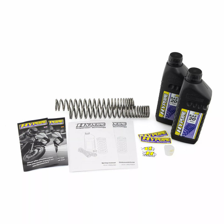 Les ressorts de fourche à baisse progressif peuvent être utilisés pour abaisser le frontage de la moto lorsqu'il n'est pas possible de réduire les fourches à travers les yokes (triples pinces). Hyperpro conseille de baisser à l'avant et à l'arrière de la moto pour être assuré du meilleur comportement de conduite du vélo et de pouvoir tenir sur votre vélo.