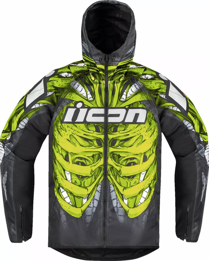 Graphique Airform Manik'r ™ à l'avant et à l'arrière de la veste, châssis en polyester 420D avec renforcement interne en polyester 300D, matériau de coquille enduit de PU avec finition DWR, protecteur de dos vipère amovible D30®; Protégeurs d'impact sur les coudes et les épaules, Hotte à cordon de cordon élastique, panneau de maillage avant Airfly ™ Cental avec évents à fermeture éclair à la poitrine et arrière, à glissière à manchette, à dos de dossier en 1621-2