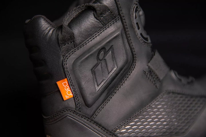 Superbe en cuir premium Caractéristiques d'une finition résistante à l'eau, des revêtements imperméables d'événement respirant aident les semelles extérieures en caoutchouc à huile / à glisser à sécher à sécher et à glisser offrent des performances de moto à cellule ouverte en polyuréthane à cellules intérieures, BA. L'ajustement confortable, les deux inserts D3O® fournissent une couverture de la cheville, des capuchons d'orteils en caoutchouc renforcés, des accents de talon réfléchissants et des nœuds d'interface de levier de vitesses