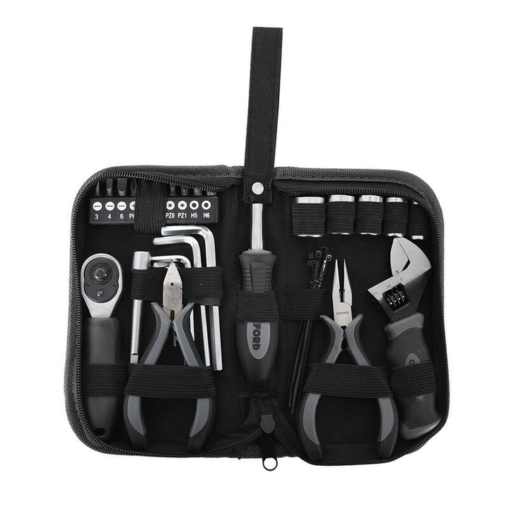 Le Kit à outils Oxford Pro est une trousse complète d'outils de moto premium de 27 pièces. Les poignées de gel doux s'assurent que les outils sont confortables à utiliser et chacun est maintenu à sa place par une sangle élastique ajustée à l'intérieur d'un boîtier de stockage compact, idéal pour garder sous votre siège arrière. Les prises, la barre d'extension et les clés hexadécimales sont fabriquées en acier chromé de vanadium durable.