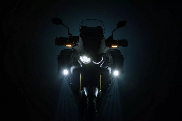 Les feux de route EVO sont idéaux pour rouler de longues distances dans des conditions routières où la distance maximale du faisceau est souhaitée pour augmenter la visibilité et la sécurité, les lumières EVO représentent une conception exceptionnelle, des normes de haute qualité et des eaux fiables et une protection contre la poussière (IP69) sans problème et sans entretien pour des années, sans problème et opération sans maintenance par le LED sans usure, consommation de la luminale, à la luminale, à 12 ans, à 12 Diamètre: 7,1 cm, épreuve de l'eau et de la poussière (IP69), se connecte directement à la moto, aucune modification de la moto électrique nécessaire, résistant aux intempéries, l'interrupteur de guidon bleu illuminé pour une main facile 27, 28 mm) ou sur des supports légers spécifiques à des vélos pour le matelage à cadre (Vendu séparé