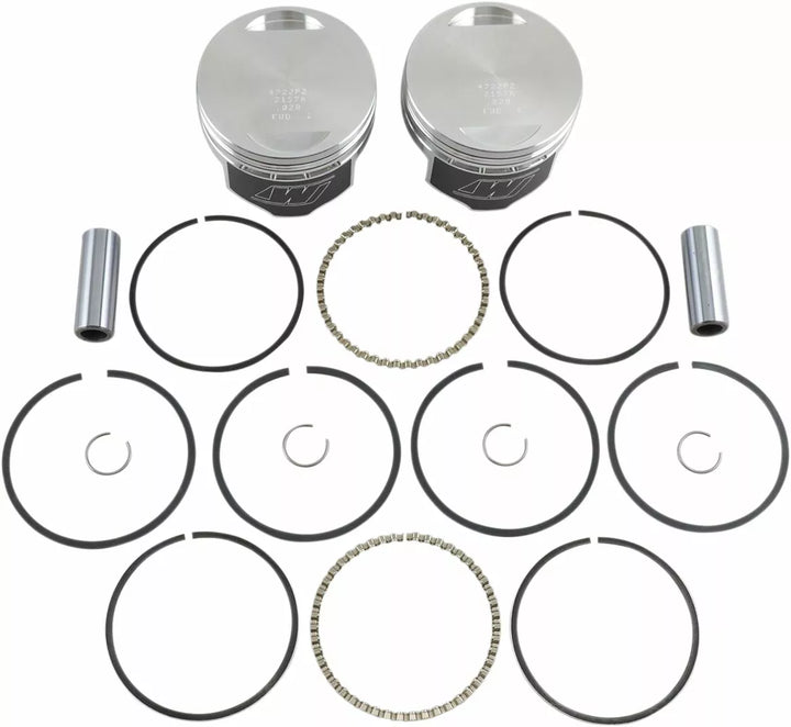 Forgé de l'alliage en aluminium élevé à haut silicium pour une résistance et une fiabilité maximales, le kit comprend des pistons, des anneaux, des clips de retenue et des broches de piston chromé, comprend un package à anneau X (anneau supérieur de 0,062 ", un anneau de compression 0,062" et 0,158