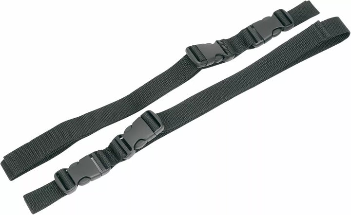 Deux sangles en nylon réglables de longueur sont incluses; Chacun mesure 38 "L lorsque les boucles ne sont pas connectées, chaque sangle comprend un mâle et une boucle femelle, plus une deuxième boucle mâle cousue à la sangle qui se branche sur la plupart