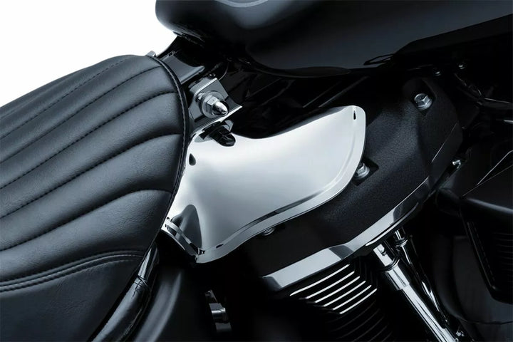 Bouclier de polycarbonate de fumée de fumée montée sur cadre, parfaitement positionnée pour dissiper et rediriger la chaleur loin du corps du cavalier