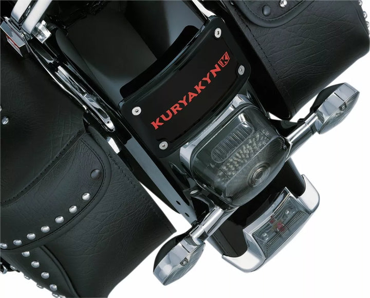 La plaque de support et le cadre incurvé se rencontrent proprement pour un look fini, pour une utilisation sur n'importe quel modèle H-D avec le support de plaque d'immatriculation monté à 3 boulons standard