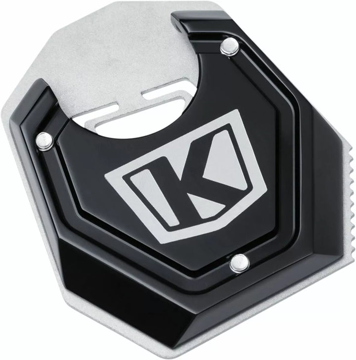 Fournit une surface supplémentaire pour empêcher le couvre-pied dans les surfaces douces, le haut en aluminium 6061-T6 usurant CNC avec une plaque inférieure en acier inoxydable au laser, le bord extérieur peut être utilisé pour Breide sur les flids sur FLTR. La plaque inférieure annonce la traction pour aider à déploier la kickstand dans des conditions humides ou boueuses, comprend trois vis M5