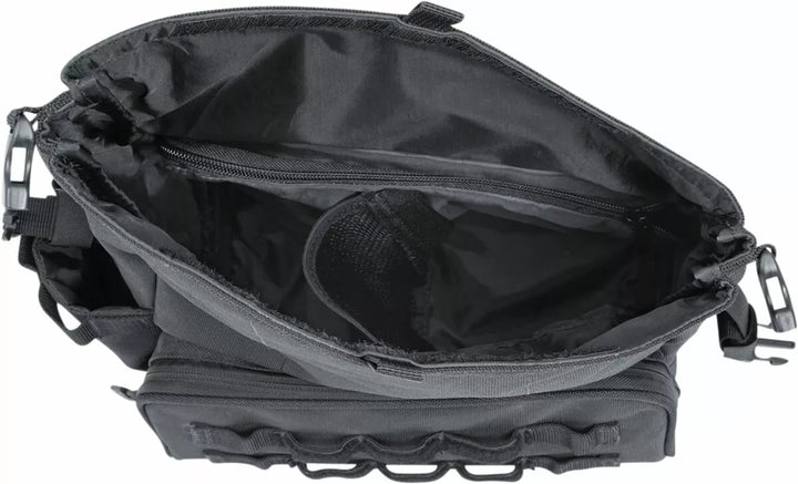 La conception sécurisée de roulement offre un accès facile lors de son montée, ainsi que une protection supplémentaire contre les éléments, fabriquée à partir de textile de nage intérieure, rédigée par les UV, résistant aux intempéries, la conception rigide de fin de la doublure intérieure garantit une rétention et une protection principales contre les éléments, les supports de la sécurité, le système d'attaque de la Triangle / Softail Sythme Interférence, compartiment à glissière externe plus Multe Molle molle molle molletm pouces cubes, UE: mesure 14,75 L