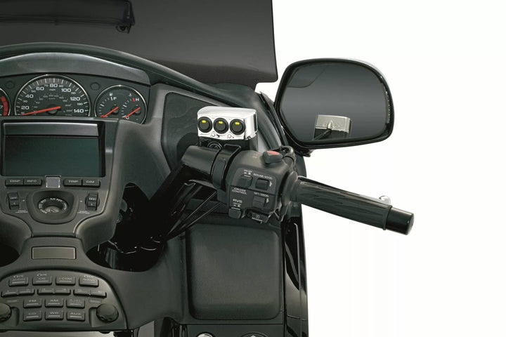 Moyen pratique d'obtenir le contrôle du doigt des lumières d'accent et d'autres accessoires électriques de moto, la couverture a trois commutateurs; Chacun est évalué pour 12 V et jusqu'à 12A