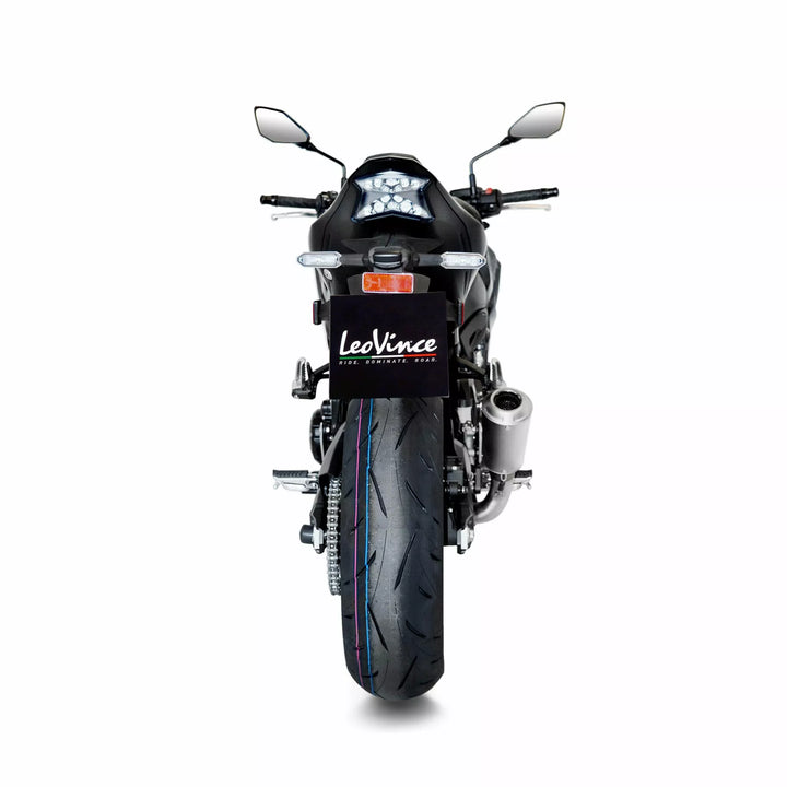 LV-10 Titanium (ADN de course), développé en collaboration avec le département de course de Leovince et appliquant l'expérience acquise dans les championnats Moto 2 et Moto 3, le LV-10 Titanium exprime les meilleures technologies de course. sont fabriqués à l'aide de titane de grade 1, un matériau pur avec des caractéristiques élevées de ductilité, de résistance et de résistance à la corrosion tandis qu'elle garantit une réduction de poids de 30% par rapport à l'acier inoxydable., Le soudage TIG est fait entièrement à la main et souligne les Craftmans. ADN., Caractéristiques, entièrement fabriquées en titane grade 1, poids réduit de 30% par rapport à la version en acier inoxydable, soudures à la main, logo Leovince gravé au laser, support de coupe laser