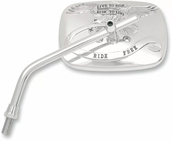 Miroir en acier universel avec message «Ride Free» et image sur miroir, le miroir est entièrement réglable, un montage de 10 mm