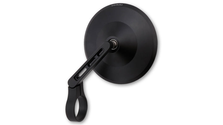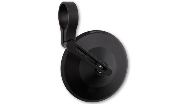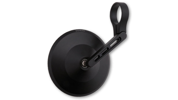 Miroir à poignée universelle avec un beau et noble design en aluminium anodisé noir. La fente d'air des bras de miroir donne à la fois une apparence sportive et fonctionnelle. Une charnière sur la pince permet d'ajuster le miroir pour une meilleure visibilité.