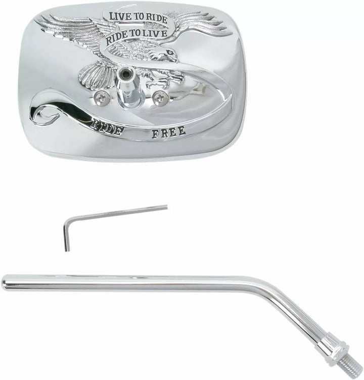 Miroir en acier universel avec message «Ride Free» et image sur miroir, le miroir est entièrement réglable, un montage de 10 mm