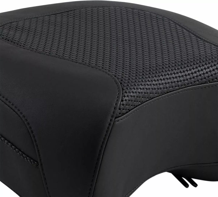Les sièges en solo comportent un nez plus étroit que le stock pour une conduite régulière et confortable, les sièges arrière larges en option offrent un coussin maximal - vendu séparément, revêtement supérieur en vinyle élargi de qualité supérieure, les contours de la conception du siège offrent un dos inférieur
