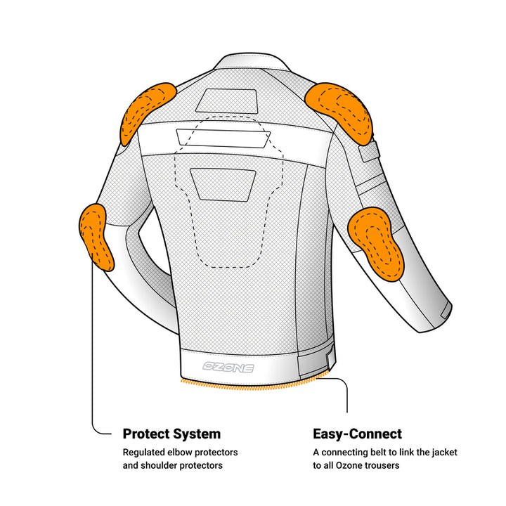 Ozone Fléchettes est un veste de moto légère et ventilée créé pour donner confort maximum aux températures chaudes. Avec Grands panneaux en filet à l'avant, arrière et manches garantit qu'il Circulation d'air optimale, tout en conservant un niveau élevé de sécurité avec Protection certifiée CE sur les épaules et les coudes.