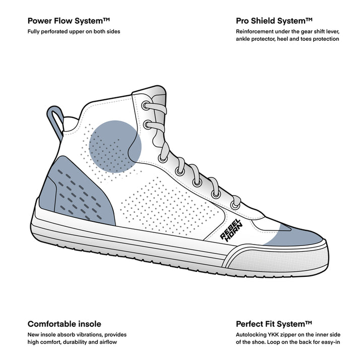 Rebelle Pointe est chaussures de moto élégantes et fonctionnelles, Créé pour Conduite en ville et utilisation quotidienne. Ces chaussures se combinent Sécurité, confort et style et sont parfaits pour les conducteurs qui veulent un apparition décontractée sans compromettre le refuge.