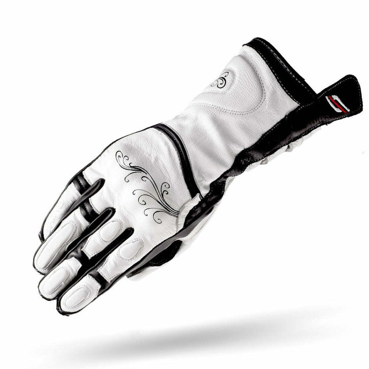 Le modèle est spécialement conçu sur la base de la structure anatomique de la main d'une femme, c'est-à-dire des doigts plus longs et étroits et un intermédiaire et du poignet plus étroit. Deux sangles de réglage sont fixées avec du velcro et une longue coiffe élastique vous permet d'adapter le gant à votre main. Les gants sont en cuir anil naturel de haute qualité. Le modèle Shima Moderna a également reçu de délicates designs féminins à l'arrière de la main.