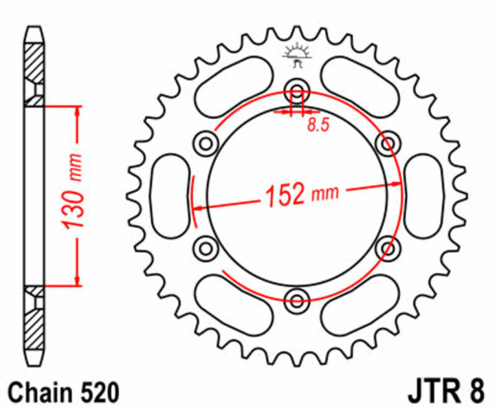 Sprock arrière standard en acier de JT Sprock 8 - 520 JTR8.48