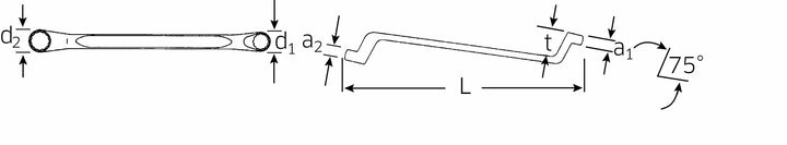 Offset Stahlwillestabil®, DIN 838 / ISO 10104 (tailles métriques), Aleure en alliage chromé, chromé, mesure :, Spanner Opening Mm: 8 x 10, L mm: 180, d1 mm: 13,1, d2 mm: 15,8, a1 mm: 7, a2 mm: 9, t mm: 21, poids g: 61