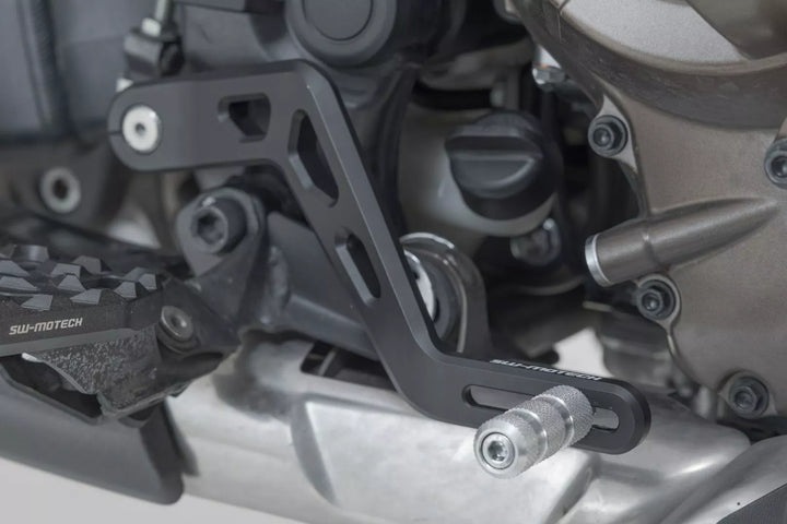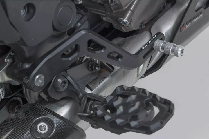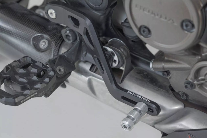 Bras de vie en aluminium spécifique au vélo, construction robuste, ajustement parfait: aluminium enrobé par CNC, Hart-Coat ᆴ enduit, broyée de haute qualité pour une stabilité maximale, Treat Street inclus par défaut dans la livraison. Slipping., La plate-forme comprend diverses positions réglables, la bande de roulement d'aventure pour les tournées hors route (vendues séparément), 1 x pédale de frein, instructions de montage, matériau de montage