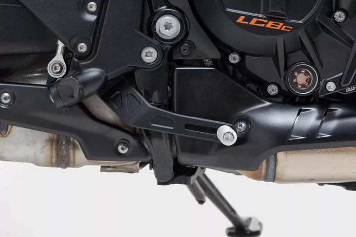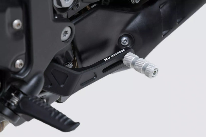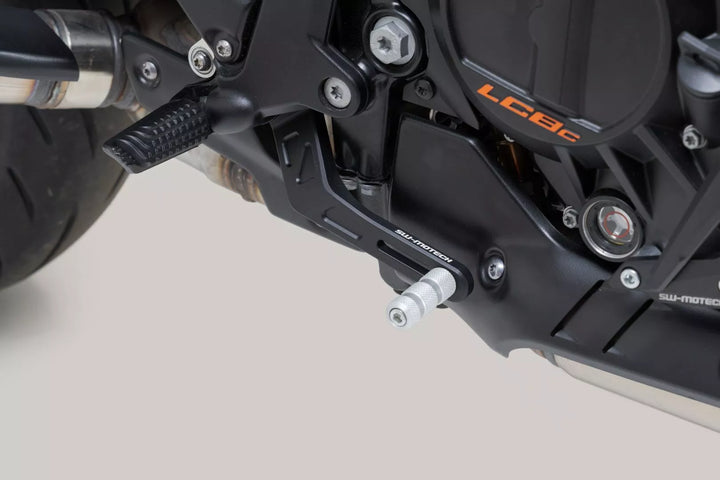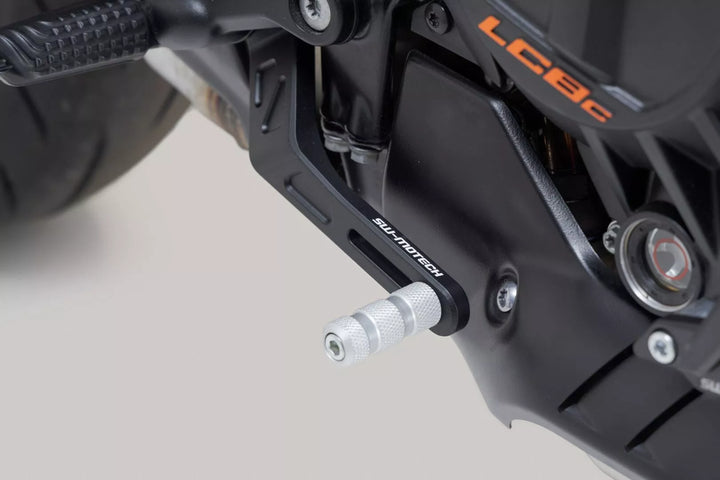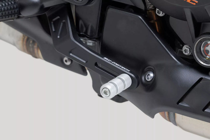 Bras de vie en aluminium spécifique au vélo, construction robuste, ajustement parfait: aluminium enrobé par CNC, Hart-Coat ᆴ enduit, broyée de haute qualité pour une stabilité maximale, Treat Street inclus par défaut dans la livraison. Slipping., La plate-forme comprend diverses positions réglables, la bande de roulement d'aventure pour les tournées hors route (vendues séparément), 1 x pédale de frein, instructions de montage, matériau de montage