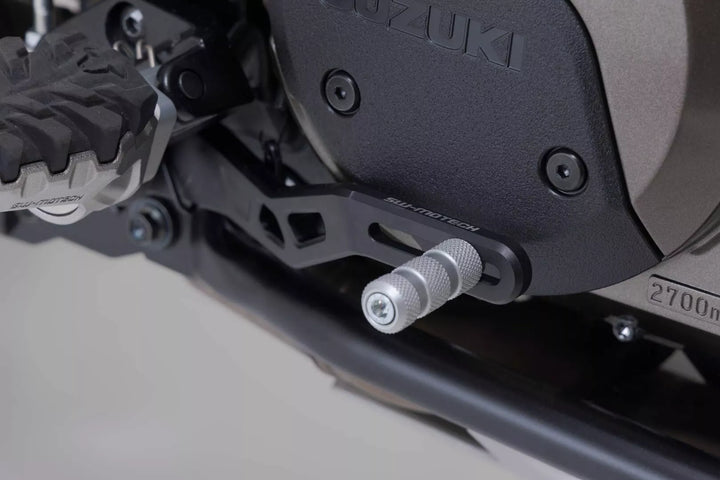 Bras de vie en aluminium spécifique au vélo, construction robuste, ajustement parfait: aluminium enrobé par CNC, Hart-Coat ᆴ enduit, broyée de haute qualité pour une stabilité maximale, Treat Street inclus par défaut dans la livraison. Slipping., La plate-forme comprend diverses positions réglables, la bande de roulement d'aventure pour les tournées hors route (vendues séparément), 1 x pédale de frein, instructions de montage, matériau de montage