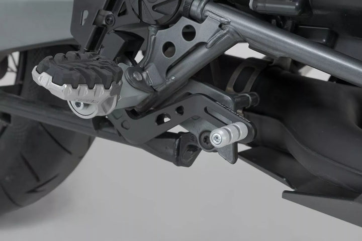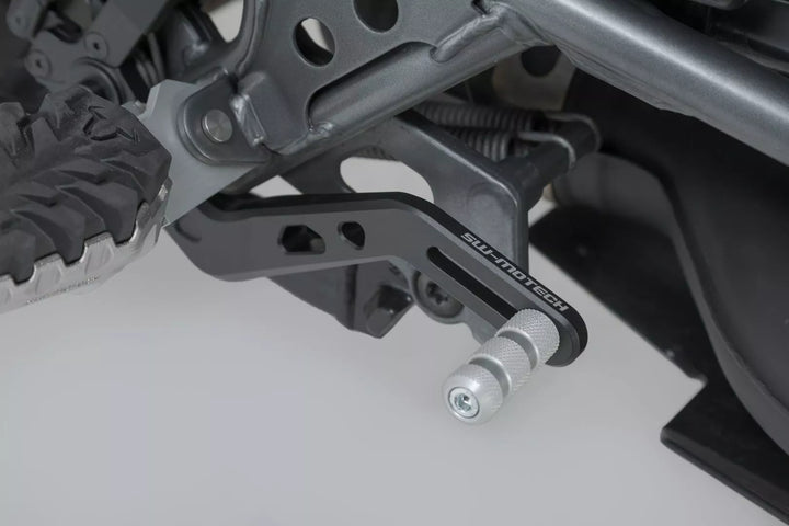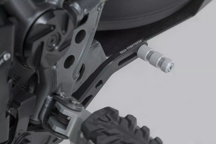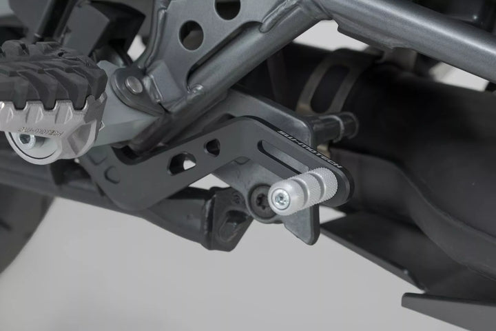 Bras de vie en aluminium spécifique au vélo, construction robuste, ajustement parfait: aluminium enrobé par CNC, Hart-Coat ᆴ enduit, broyée de haute qualité pour une stabilité maximale, Treat Street inclus par défaut dans la livraison. Slipping., La plate-forme comprend diverses positions réglables, la bande de roulement d'aventure pour les tournées hors route (vendues séparément), 1 x pédale de frein, instructions de montage, matériau de montage