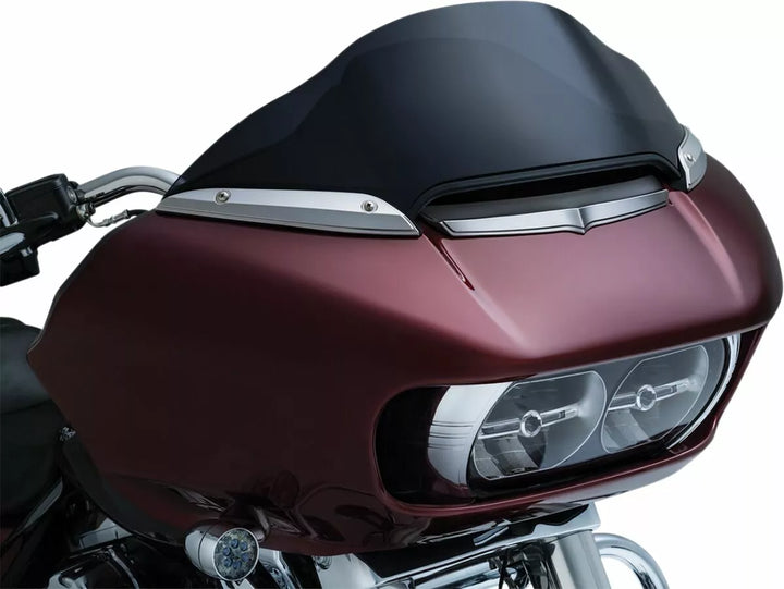 Améliore la transition du pare-brise au carénage sur les modèles de glissement routier, fabriqué à partir d'ABS légèrement injectable, l'installation des pièces de garniture noire brillantes réutilise la quincaillerie OEM tandis que la version chromée est livrée avec des vis de remplaçant les vis de remplaçant les vis