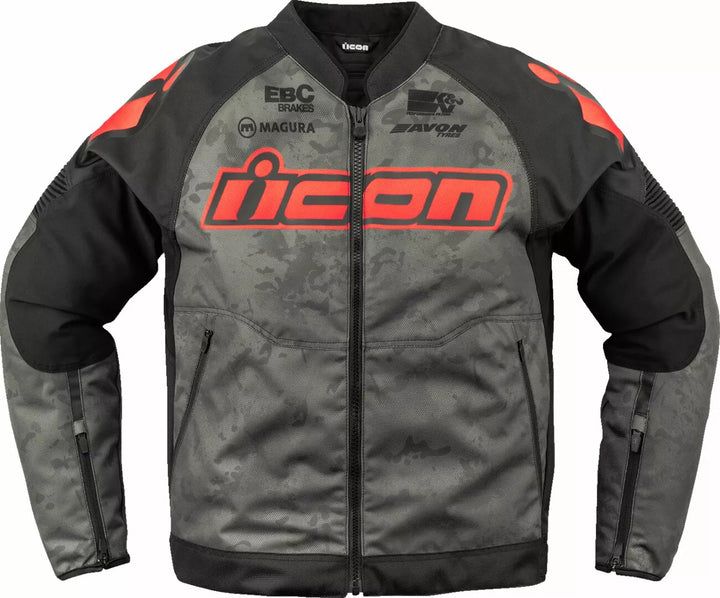 Impression de camouflage subtile sur la veste Magnacross Overlord3 en châssis en polyester 300D durable, à l'intérieur de la veste est renforcé avec un polyester 300D, D30® amovible Viper Back Protector; Protégeurs d'impact EVO et épaule T5 EVO, bras pré-courbés et experts en taille, panneau de maillage avant Airfly ™ avec évent d'échappement inférieur intégré, fermeture à glissière à manchette, doublure en gilet isolé amovible, dossier arrière Protect