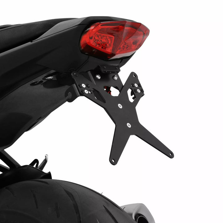 Le support de plaque d'immatriculation est extrêmement durable et à l'épreuve des intempéries., Black Powder enduit. , Le support de plaque d'immatriculation peut être utilisé pour tout type de plaque d'immatriculation (largeur de 175 mm)., Aucune modification du carénage requise., Réglage sans étape de l'angle de râteau., Prise en charge de l'indicateur réglable en 3 positions. Plaque., Supports d'éclairage indicateur spécial (vendus séparément) requis pour les voyants d'indicateur de stock., Kit comprend: 1 porte-plaque d'immatriculation incl. Kit de montage., Light Plaque d'immatriculation LED "E approuvé" incl. Support., Back Light avec support. Avertissement: Important: Pour l'utilisation de ce support de plaque d'immatriculation avec les signaux de clignotants OEM des modèles Ducati (2015 - présent), un titulaire spécial est nécessaire (Adaptateur de signal de virage Zieger et Duc. Numéro de pièce Europe: 20301971. Numéro du vendeur: 10005790).