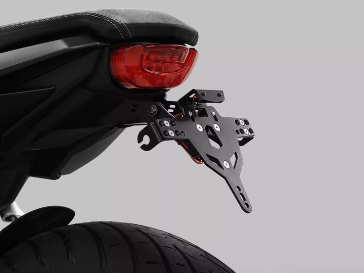 Le support de plaque d'immatriculation est extrêmement durable et à l'épreuve des intempéries., Black Powder enduit. , Le support de plaque d'immatriculation peut être utilisé pour tout type de plaque d'immatriculation (largeur de 175 mm)., Aucune modification du carénage requise., Réglage sans étape de l'angle de râteau., Prise en charge de l'indicateur réglable en 3 positions. Plaque., Supports d'éclairage indicateur spécial (vendus séparément) requis pour les voyants d'indicateur de stock., Kit comprend: 1 porte-plaque d'immatriculation incl. Kit de montage., Light Plaque d'immatriculation LED "E Approsved" incl. Support., Back Light avec support. De: Suisse, Pologne et Irlande.
