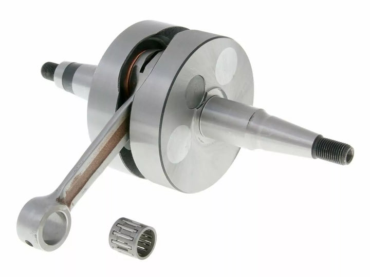 Vervangende crank van goede kwaliteit voor gerichte fietsen met de Derbi D50B0 -motor (vanaf 2005), komt overeen met de originele afmetingen en wordt verondersteld met klein eindlager, netlagers niet inbegrepen, maar we raden deze volledig aan om deze te veranderen bij het passen van een nieuwe kruk