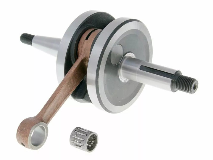 Vervangingscrank van goede kwaliteit voor gerichte fietsen met AM Minarelli, Generic, KSR-Moto, Keeway, Motobi, Ride, CPI, 1E40MA, 1E40MB-motoren, komt overeen met de oorspronkelijke afmetingen en wordt aangevuld met een klein einde.