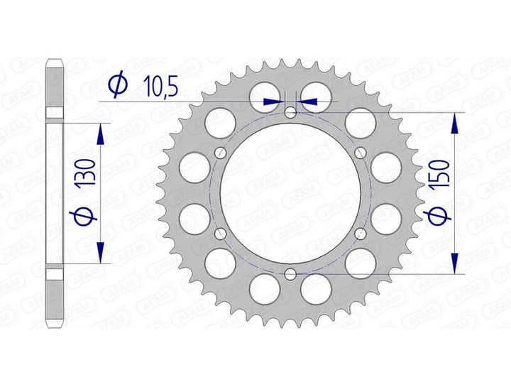 AFAM ALU Achterproces geproduceerd met een lichtmetalen Whice combineert lichtgewicht en weerstand. Het hoogwaardige productieproces en de snijprecisie maakten AFAM tot een wereldleider voor motorfietstransmissie-onderdelen. Racetype aluminium achter-Prochetultra-licht en geharde anodisatie inBREASS fictiebestendigheid en duurzaamheidstop van bereikproductie en kwaliteitsvolle voorliggende raceketen_pitch: 520.0 Materiaal: Aluminium: Aluminium: Achter_proet_ssion: Ultra-light