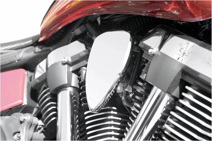 Mini -traanafdekkingen zijn gevormd, vergelijkbaar met de beroemde achteromslagen van Baron, voeg een prachtig chrome display toe terwijl ze blootgestelde motorcomponenten bedekken, de kleine, stock chroom plastic dekking aan de linkerkant van de motor, alle vereiste tware, muntbrace vervangen.