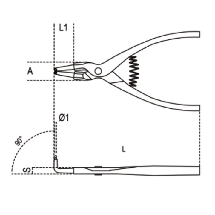 Beta externe circlip tang 90 ° gebogen patroongrootte 175 010380017