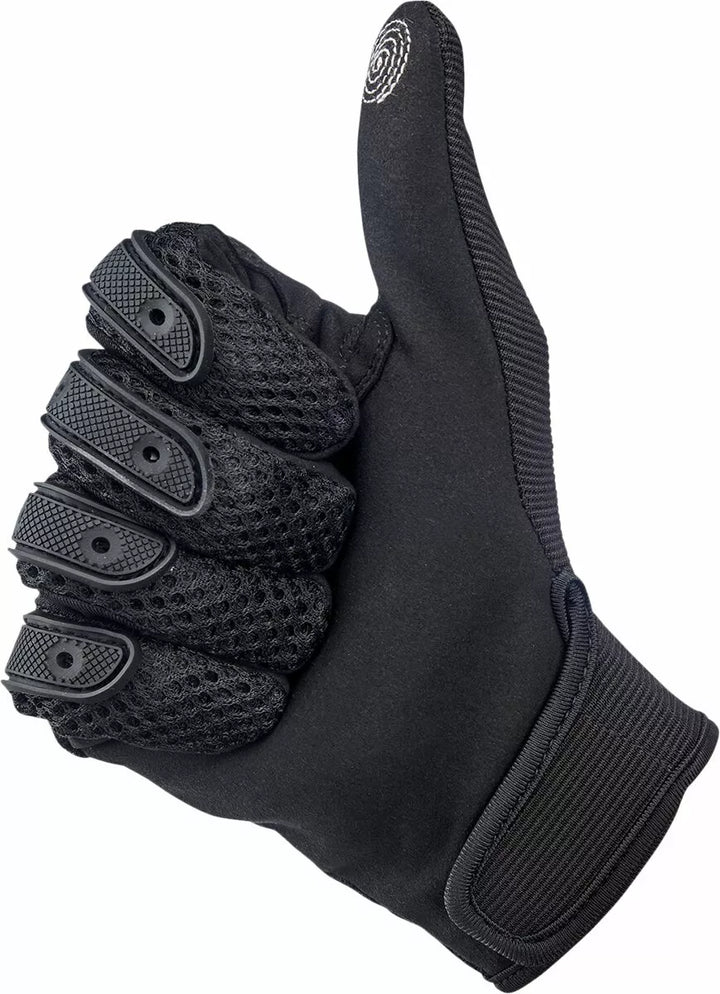 Synthetic Suede Palm Features Two-Way Stretch for a Snug, Comfortable Fit, Three-Ply, One-Piece Vented Polyester Back and Thumb Construction for Maximum Airflow, Flexible Thermoplastic Rubber Knuckle Guards and Shield Logo, Lycra® Expans and double-free polyester stitching, Thermoplastic Rubber Knuckle Guards on the Back of the Glove Provide Protection from Rocky Roost and Airborne Road Debris, A Double-Stitched Reinforcing Paneel op de duim en wijsvinger voegt stremtth -stiksels toe in vingers en duimen die u slimme schermen bedient