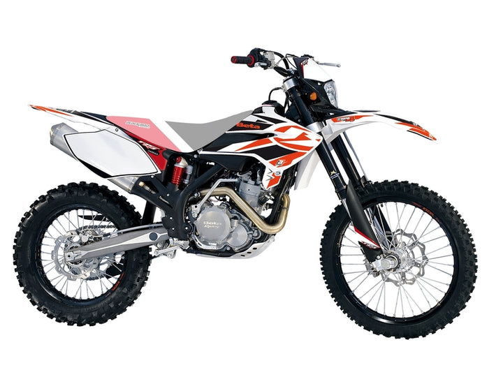 Pas uw motorfiets aan in de kleuren en het ontwerp van uw keuze met blackbird grafische kits. Dream Graphic IV -sets zijn nuchter en geven de machine een meer "racen" look. Grafische kit: radiatorschuim, voor- en achterste modderwacht met een gelamineerde stokjes bedekt met zeer sterke Gluepattern's gedrukt in ultraviolette resistente inkkit weerstaat toegepaste kracht en effecten in het gebruik van motorcross