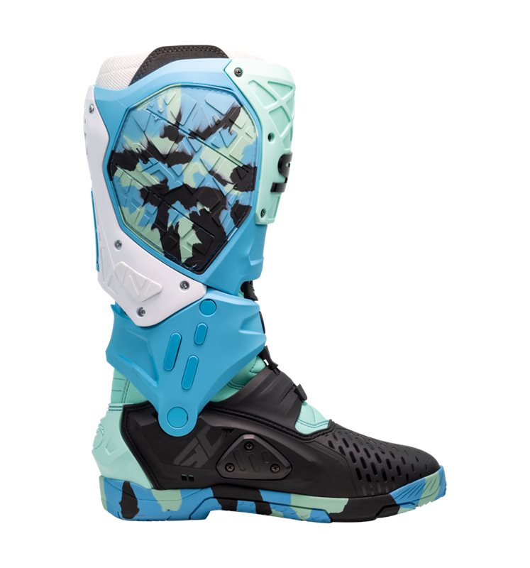 De laars wordt met één versterkt Binnenste glasvezel-exoskelet Dat biedt ondersteuning voor sprongen en landingen, terwijl een gevorderd 3-punts anti-hyperflexiesysteem Beschermt de voet tegen schadelijke overbelasting. De buitenste behuizing bestaat uit duurzaam MXGP en SX-geteste microvezel en is bedekt met Stand -resistente bescherming In hoge dichtheid - waar het echt nodig is.