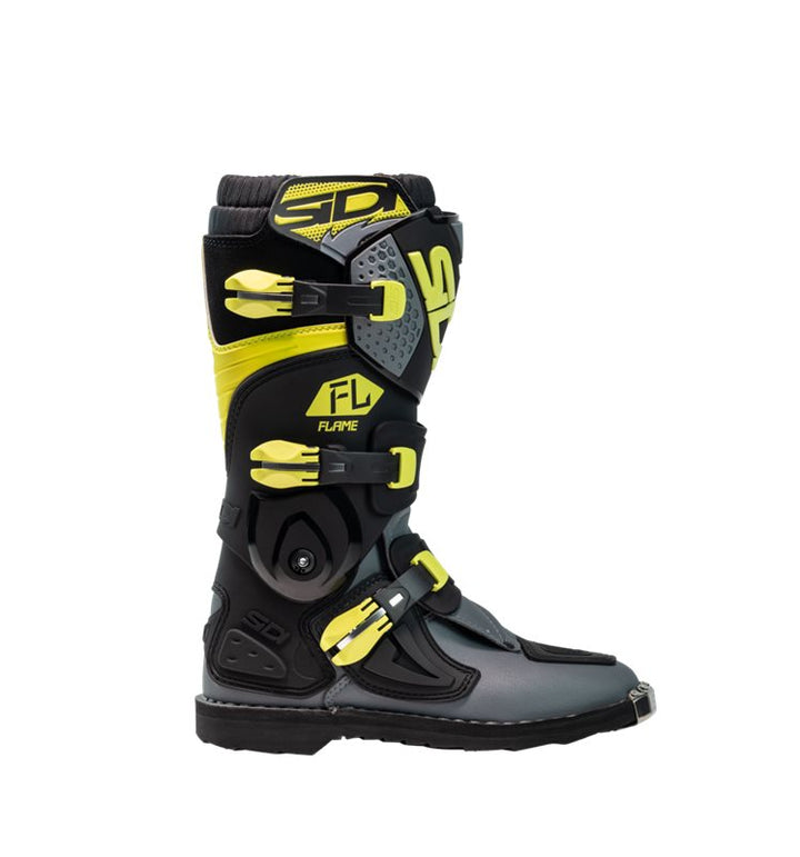 Sidi Flame Is de laars die jonge chauffeurs dezelfde technologie en bescherming geeft als de volwassenen - hoewel in de grootte van het kind. Gebouwd met dezelfde passie voor prestaties als de racemodellen van het merk, is vlam perfect voor kinderen die zich veilig en cool willen voelen op de heuvel, of het nu de eerste cross -cursus is of de volgende stap naar de sterren.