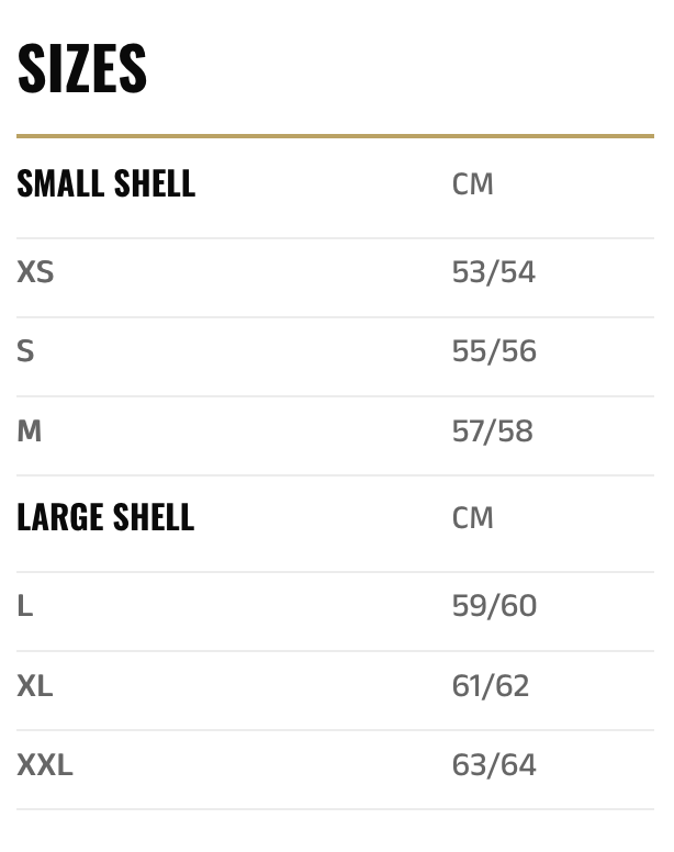 Twee shell-maten voor een meer optimale relatie met de hoofdgrootte waar de kleine schaal XS-M en grote L-XXL omvat.