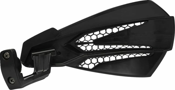 Open handbeschermers met universele montagebeugels, maximale bescherming tegen baan-/trailafval, dubbele injectie voor verhoogde impactweerstand, flexibele/lichtgewicht/sterk, twee horizontale posities, ingebouwde ventil-stuur 125cc en omhoog