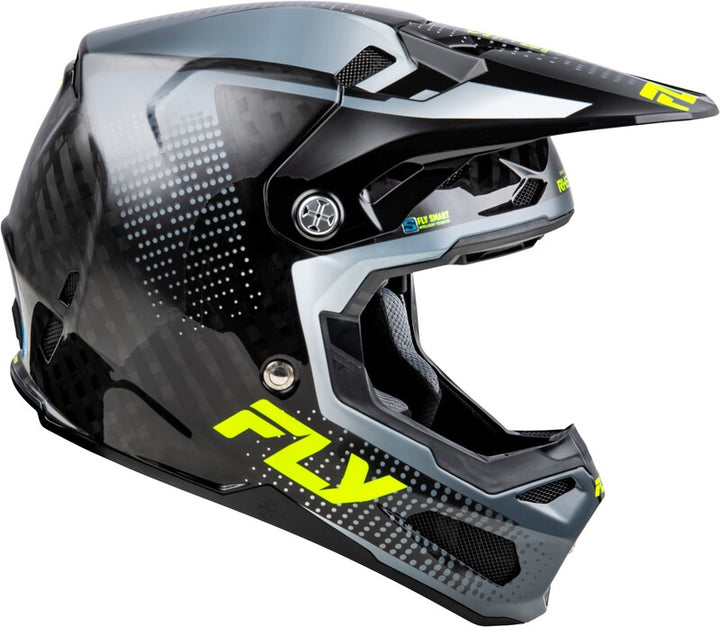 Fly Racing Formula's koolstofprotocol helm-zwarte koolstof/grijs/hi-vis 73-4464X