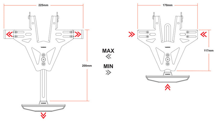 Deze houder is gemaakt 2 mm laser gesneden stalen plaat En poeder gecoat in zwart voor de beste weerweerstand en levensduur. De helling van het bord is stiekeloos verstelbaar en een extra vergrendelingsschroef die hij stevig op zijn plaats houdt. De knipperhouders zijn in breedte verstelbaar en hebben Zijkant gemonteerde gaten van 10 mm, waarmee u knipels kunt installeren zonder de kabels los te koppelen - soepel en slim!