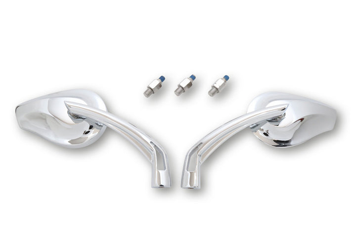 Highsider Pheonix 2 Mirror, Alu Chromed of Black Selecteerbaar, met 2 Mirror Adapter M10 x 1,25 mm en 1 x extra L/H-Thread Adapter f. Yamaha, E-Ground, Pair.