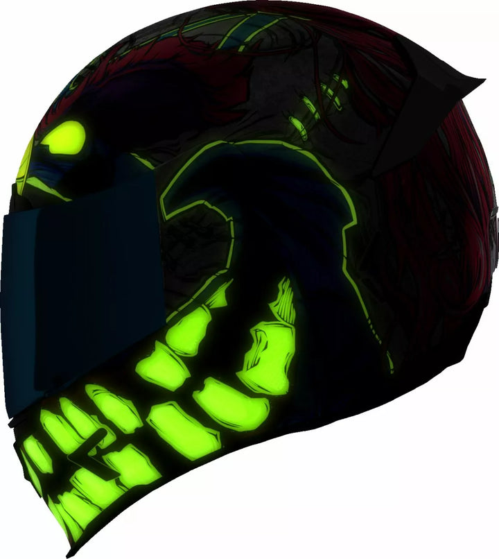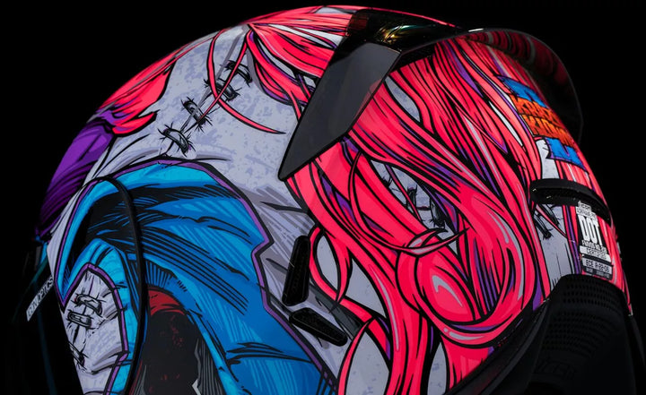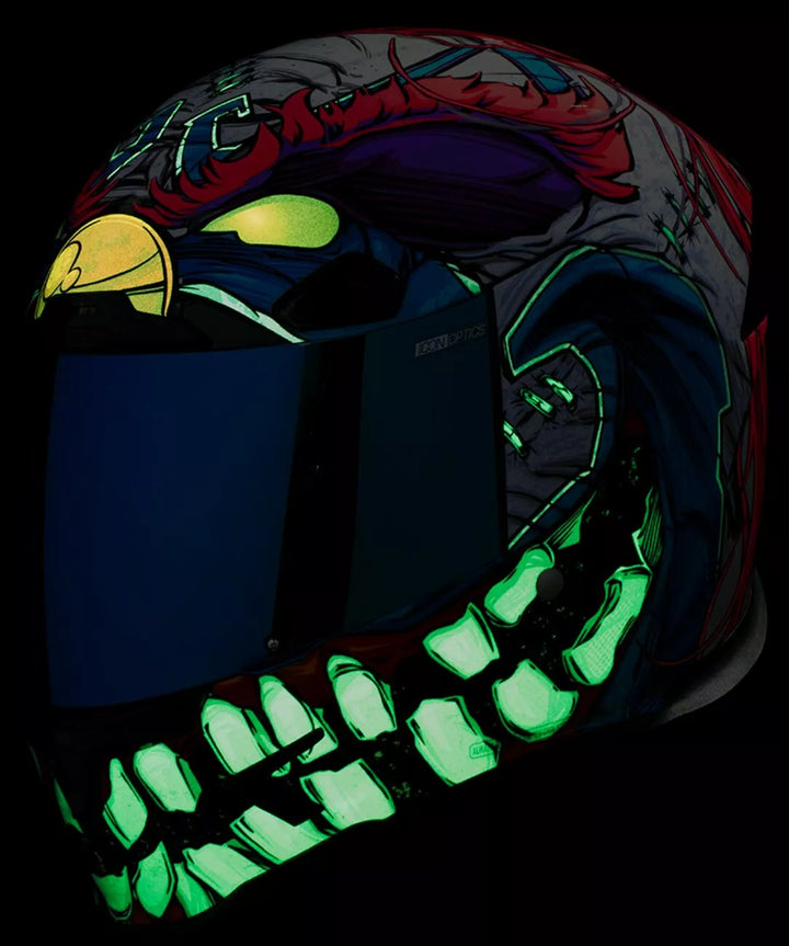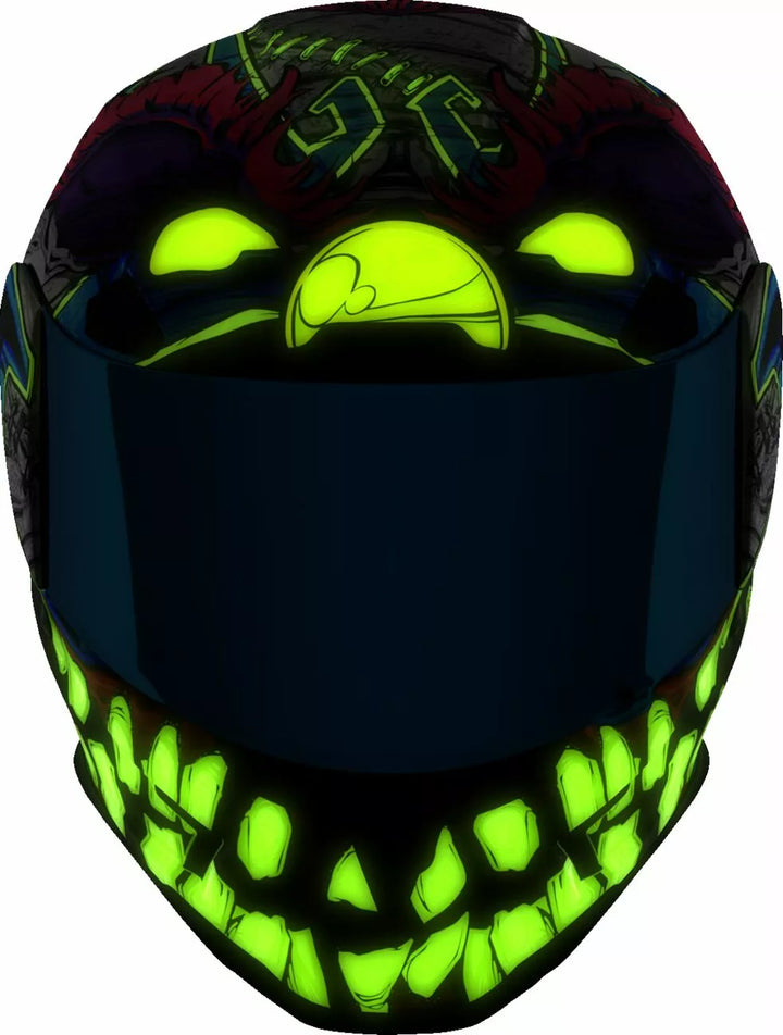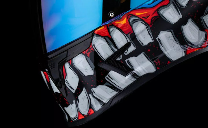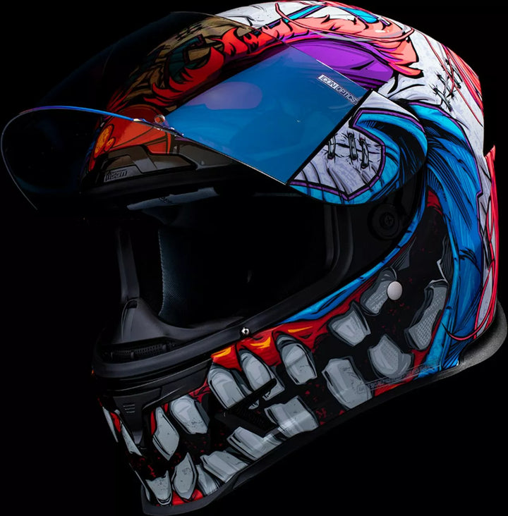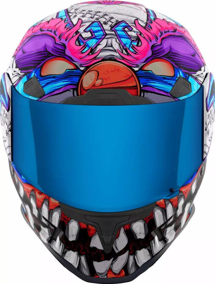 Icon Airfrene Pro ™ Krazy Klown 2 Is de helm voor degenen die willen worden gezien en gehoord - zowel op als naast de baan. Met zijn Provocerende en unieke afbeeldingen en geavanceerde technische kenmerken Dit is een helm dat iemand niet onaangeroerd achterlaten.