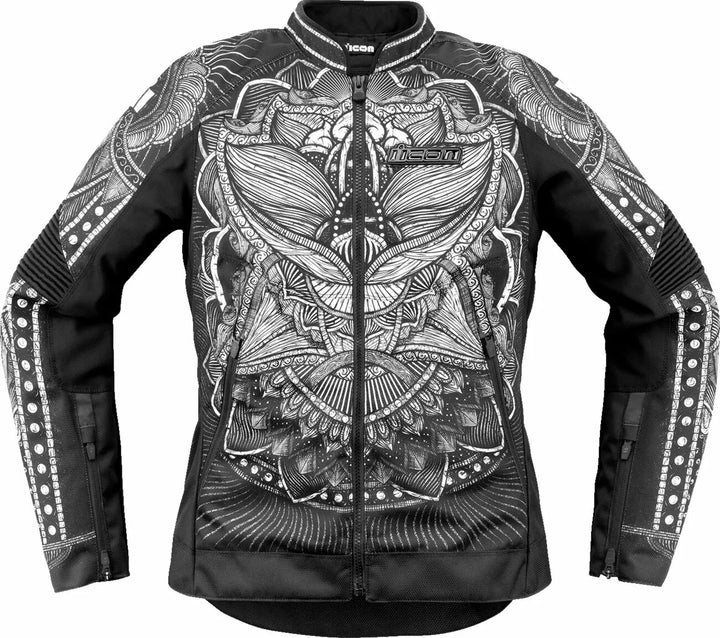 Dames Overlord3 Noble ™ jas met Allover Graphics gedrukt op een 1680D en 300D Polyester-chassis en interne 300D-polyesterversterkingen, Icon® damessport passen bij voorgesneden armen en gevormde lichaam, D30-pannen, beschermer; Elleboog- en schoudereffectbeschermers, verwijderbare geïsoleerde vestvoering, achterbeschermer EN 1621-2 niveau 1