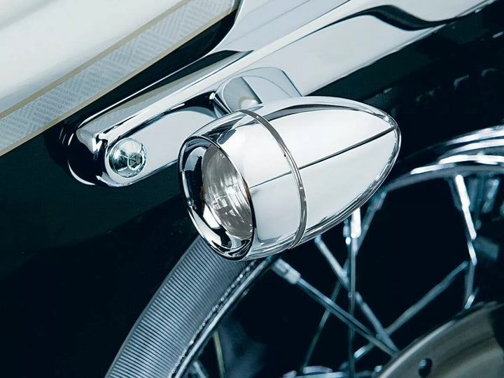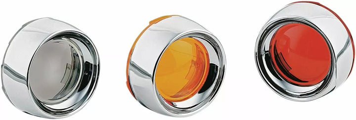 Past op stock -signaalbehuizingen met stockbollen, installatie is een "snap" en vereist geen tools, voor モ deuce -stijl "turn signalen, niet dot -compatibel., Belangrijk: DOT -certificering is alleen geldig in de VS.