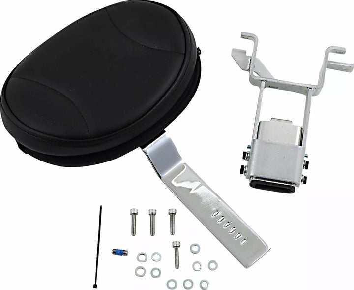 Het voorgevormde ontwerp van het pad biedt de perfecte hoeveelheid onderrugsteun die kan worden ingebeld om aan de behoeften van vrijwel elke rijder te voldoen. Voor- en achterste buurbaarheid kan ook worden ingesteld bij de installatie om ondersteuning te bieden precies waar de behoefte is. Premium synthetisch lederen rugleuning kussen, kussen meet 7 "lang x 10" breed, inclusief stalen montagebeugel