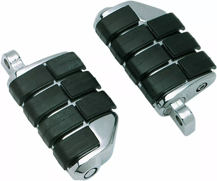 Geef je een aangepaste look en stoomtrillingen, verwisselbare uiteinden die worden gebruikt op vroege of late voetstijl voetspegbevestigingen, holle-core neopreen-inserts zijn lang laden, het Trident-ontwerp biedt een nieuwe look voor de originele ISO ™ -den, pennen, haringen met adapters, ISO®-PEGS-componenten zijn niet compatibel met andere voetenstijl zoals de soft-ride stijl.
