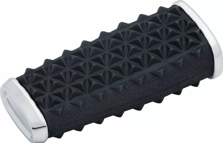 Gestroomlijnde aluminiumbehuizingen gewikkeld in zacht EPDM-rubber, gekarteld rubber heeft een ophaaientand geïnspireerd ontwerp en biedt een ideale tractie, gestyled om te matchen met Kuryakyn Thresher Grips en Pinnen